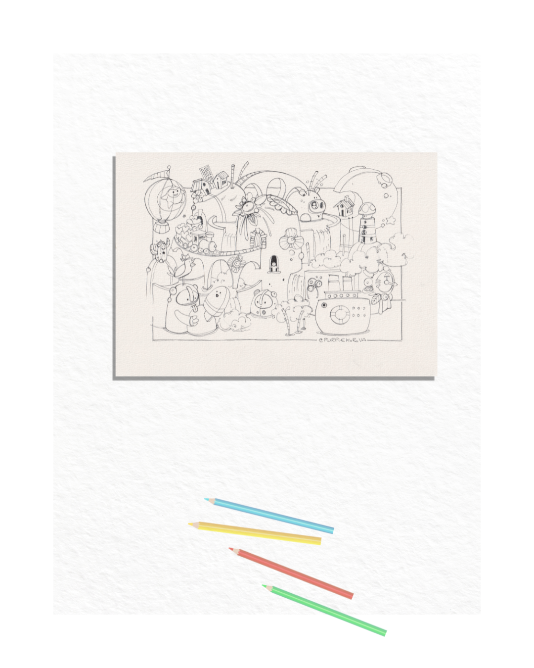Benvenuti sul ponte dove tutto è possibile. "Dream Bridge" è un’immersione totale in un mondo vibrante e caotico, popolato da buffi personaggi, fiori giganti e architetture che sfidano la logica. È un’illustrazione che non finisce mai di stupire: ogni volta che posi lo sguardo, scopri un nuovo piccolo abitante o un dettaglio nascosto tra le cascate e i binari sospesi. Preparate i vostri colori migliori, perché questo disegno chiede di essere esplorato con coraggio e fantasia.